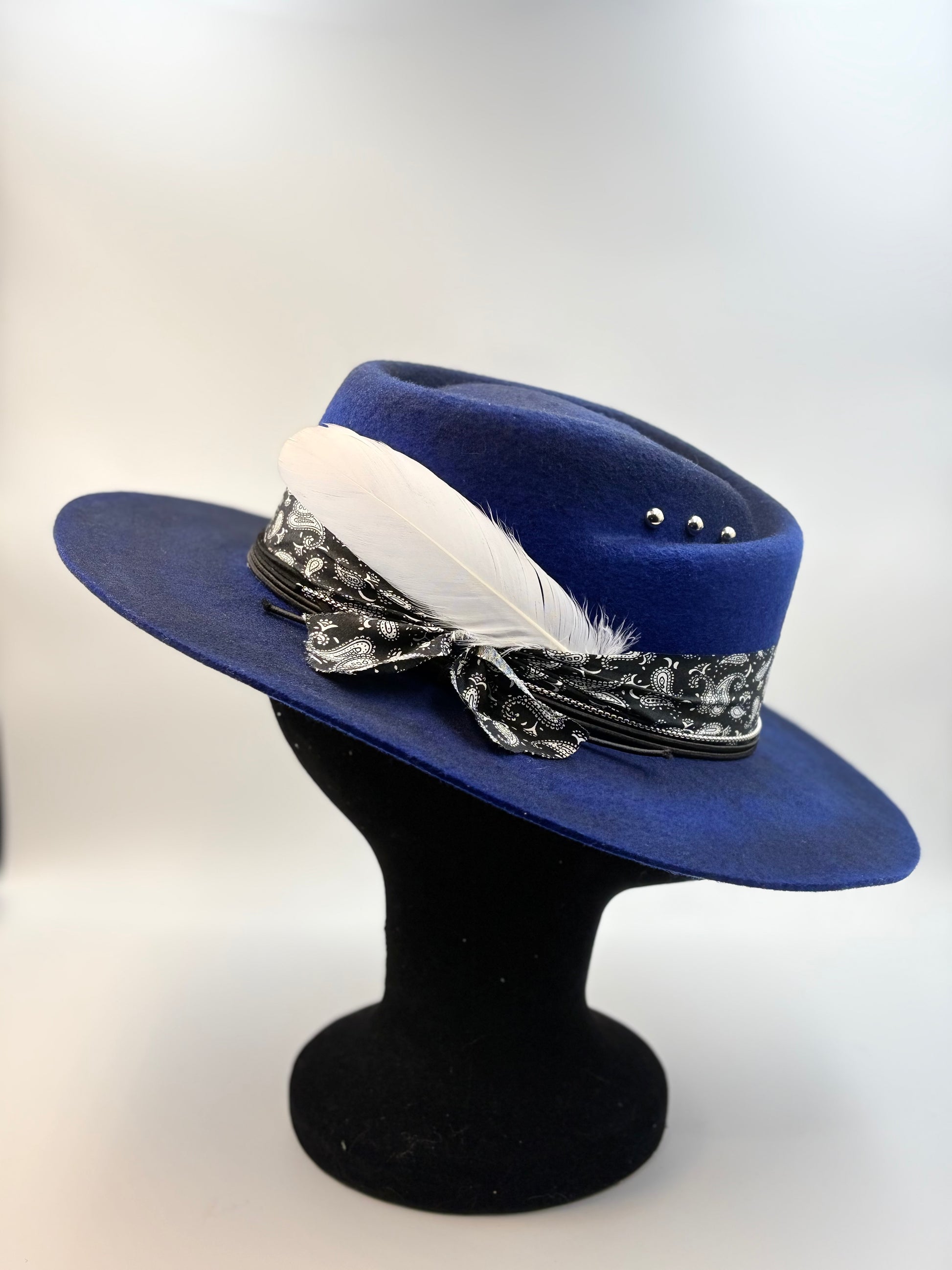 Color: Royal Blue with Black & White Paisley Band